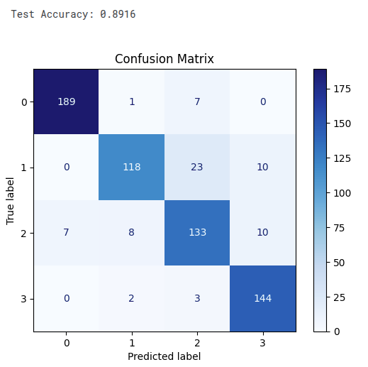 When inferred with the test_dataset, the accuracy obtained was 89% with the confusion matrix as follows:
