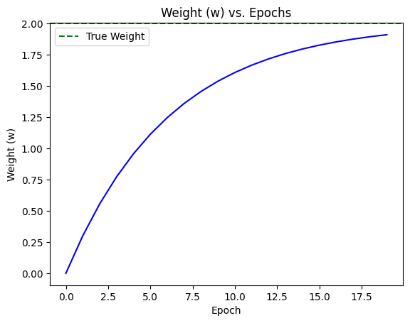 print(f"\nTraining finished. The learned weight is: {w.item():.3f}")